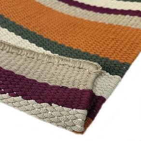 Tapete Tear 270x357 Corda Nautica Listras Ficha Técnica Acabamento da Borda : Cordão Ambiente : Sala Aspecto da Superfície : Tear Trama Composição da Superfície : 100% Poliéster Cores Principais : Bege, Roxo, Verde, Azul Espessura : Médio, 10 mm Estilo do Desenho : Listrado Forma de Produção : Artesanal, feito à mão Formato : Retangular Modelo : Tear Manual Natureza da Superfície : Sintético Procedência : Nacional Código : 027431 Tamanho Nominal cm : 250x350 Medida Real cm : 270x357