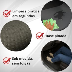 Conteúdo da Embalagem - 1 jogo com 3 peças: - 2 tapetes dianteiros com descanso de pé no lado do motorista - 1 tapete traseiro inteiriço