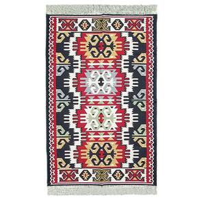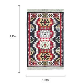Este tapete em particular apresenta um design encantador, composto por uma mistura harmoniosa de cores vivas e vibrantes. Os tons ricos e intensos incluem vermelho, azul, verde, amarelo e outros matizes atraentes, que dão vida a cada detalhe do padrão. Os motivos geométricos, como losangos, triângulos e formas estilizadas, criam uma estética moderna e visualmente interessante.