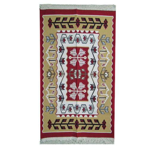 Este tapete em particular apresenta um design encantador, composto por uma mistura harmoniosa de cores vivas e vibrantes. Os tons ricos e intensos incluem vermelho, azul, verde, amarelo e outros matizes atraentes, que dão vida a cada detalhe do padrão. Os motivos geométricos, como losangos, triângulos e formas estilizadas, criam uma estética moderna e visualmente interessante.