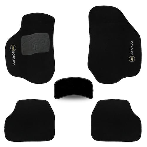 Comprove a qualidade do jogo de tapete carpete personalizado com o nome do veículo bordado e com as medidas ideais para o modelo do seu carro.