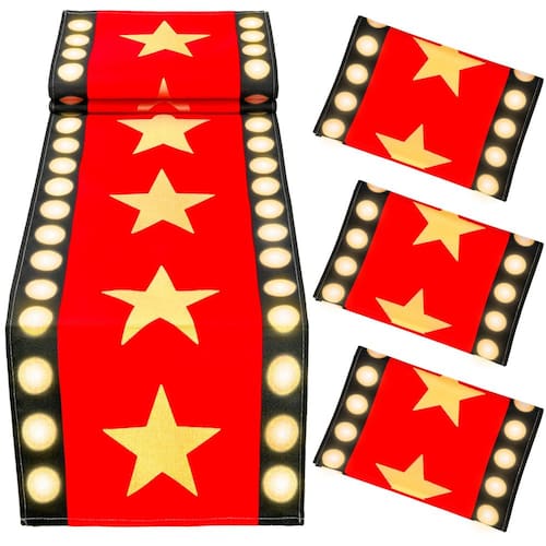 4 peças 33 x 182 cm mesa de cabeceira de cinema tema de filme vermelho com design de estrela dourada decoração de tapete vermelho para noite de cinema suprimentos de festa de aniversário (vermelho) Informações de tamanho: o caminho de mesa de cabeceira de filme aproximadamente 13 x 72 polegadas/33 cm x 183 cm, o tamanho é adequado para a maioria das mesas de festa e também pode ser colocado no chão para ser utilizado como um tapete de festa (tenha cuidado para evitar escorregões) Ampla decoração: O caminho de mesa de festa noturna de cinema pode ser decorado na mesa, lareira, em ambos os lados da porta, no chão e em qualquer outro lugar que você queira decorar Especificações: Material: couro, diamantes de cristal, liga Tamanho: aprox. 13 x 72 polegadas/33 cm x 183 cm Cor: como mostrado na imagem Quantidade: 4 peças A embalagem inclui: 4 peças de corredor de mesa de cabeceira de filme 33 x 182 cm Observação: Considere pequenos erros no tamanho devido à medição manual. Considere uma pequena diferença de cor devido a diferentes monitores. - DISIGN DE TEMA DO FILME: design de tema noturno de cinema, com estrelas douradas impressas no padrão vermelho e efeitos de lâmpada em ambos os lados, brilhante e cheio de atmosfera de festa noturna de filme. - Material de alta qualidade: o caminho de mesa é feito de estopa apertada e de alta qualidade, que não é fácil de deformar e pode ser utilizado por um longo tempo. - Informações de tamanho: o caminho de mesa de cabeceira de filme aproximadamente 13 x 72 polegadas/33 cm x 183 cm, o tamanho é adequado para a maioria das mesas de festa e também pode ser colocado no chão para ser utilizado como tapete de festa (tenha cuidado para evitar escorregões) - Quantidade: Existem 4 peças de caminhos de mesa no pacote, quantidade suficiente para decoração de festa - Ampla decoração: o caminho de mesa de festa noturna de cinema pode ser decorado na mesa, lareira, em ambos os lados da porta, no chão e em qualquer outro lugar que você queira decorar