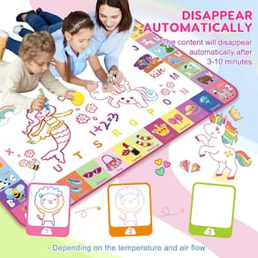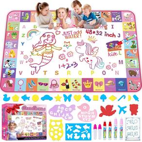 O pacote inclui: 122 x 81 cm x 1 + canetas mágicas x 6 + molde de animal x 5 + molde de desenho x 33 + modelo de desenho x 4 + livreto de design x 1 - A melhor escolha para presentes de aniversário, Natal e recompensa de crianças - Tapete de desenho aquático Brinquedos para meninas: Brinquedos de pintura de tamanho extra grande de 122 x 81 cm para meninos de 3, 4, 5, 6, 7, 8 anos. Tapete de desenho Wedopro Kids Toys atualizado com uma área de desenho maior e mais elementos em comparação com outros tapetes de desenho, deixando mais espaço para a criação de arte de rabiscos de seus filhos e compartilhando com amigos. Ensine as crianças a desenhar diferentes padrões com alguns moldes, deixe-as criar seu próprio mundo de arte, ampliar a imaginação da criança e despertar a criatividade de sua pintura infinita. Presentes para meninas de 3, 4, 5, 6 anos. - Pintura sem bagunça para crianças: reutilizável requer apenas água limpa! - Ótimo substituto para papel de pintura tradicional, evita que lápis de cor ou giz de cera marquem em todas as paredes, móveis e roupas. Encha a caneta mágica com água limpa e rabisque no tapete de desenho, após 3 a 10 minutos, as marcas de coloração desaparecerão magicamente (dependendo da temperatura e do fluxo de ar), seus filhos poderão desfrutar da criatividade no tapete de rabisco, e sem tinta, o pó de giz causará danos aos seus filhos. - Brinquedos educativos: tapete de rabisco, aprendizagem e diversão - o tapete de desenho de pintura é um ótimo brinquedo educativo para crianças, deixe seu filho começar a interação e aprender enquanto brinca. Permite que eles aprendam ABC, formas, cores e reconheçam animais. Isso pode manter as crianças ocupadas por horas em tempo de aprendizado e pode expandir o pensamento e cultivar a criatividade, promover habilidades de escrita precoce e desenvolver a aplicação cognitiva de cores e formas. Não apenas um brinquedo, mas também um elo de comunicação entre pais e filhos, compartilhando seus pensamentos e amor reunindo-se para estabelecer um relacionamento mais íntimo entre pais e filhos. - Tapete de desenho de brinquedos infantis: sem tinta, sem cheiro químico, não tóxico, não poluente. Nunca faça bagunça, limpa e segura, e é melhor para crianças desenharem. É leve e durável, fácil de armazenar, pode ser dobrado em um tamanho compacto e economiza espaço, adequado para ambientes internos, externos e viagens. O tapete de rabiscos é projetado com forro de algodão, tornando-o mais macio para o seu filho se deitar sobre ele e desenhar. Pode ser utilizado na mesa ou no chão, tapete de desenho com um espaço extra grande, 3-4 crianças podem rabiscar juntas, atividades de aprendizagem de artes e artesanato para crianças a partir de 3 anos de idade. - Presente perfeito com caixa de presente: presente ideal para meninas e meninos - Dê como presente de aniversário, presente de festa e presente de feriado (Dia das Crianças, Natal, Halloween, Ação de Graças e Ano Novo) para meninas. Seu presente atencioso colocará um grande sorriso no rostinho fofo de seus filhos. Além disso, o ciclo de serviço pós-venda de 3 anos também lhe dará mais tranquilidade ao comprar o produto, use o produto se você tiver alguma dúvida, sinta-se à vontade para entrar em contato conosco, estaremos 24 horas para o seu serviço. - O pacote inclui: 122 x 81 x 1 + canetas mágicas x 6 + molde de animal x 5 + molde de desenho x 33 + modelo de desenho x 4 + livreto de design x 1 - A melhor escolha para presentes de aniversário, Natal e recompensa das crianças.