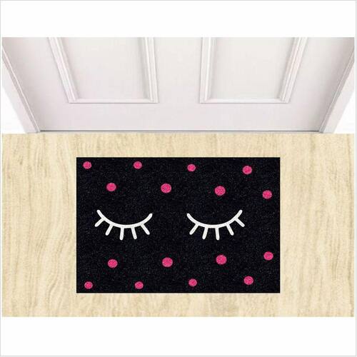 Tapetes Beleza Cílios Fofinhos 60X40cm Para Porta Decorativo - Cor: Preto