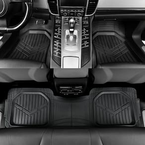 Tapetes de borracha Amazon Basics, 3 peças, pesados para todos os climas, conjunto completo, para ajuste universal em carros, SUVs e caminhões, pretos, com acabamento adequado