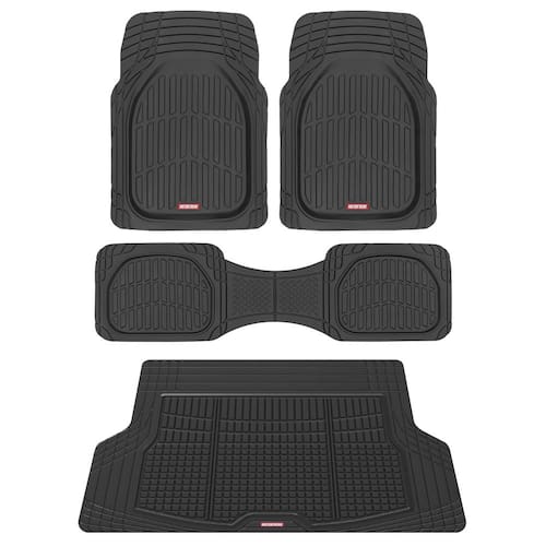 Motor Trend FlexTough Contour Liners Deep Dish 3 peças tapetes de borracha e forro de porta-malas aparável tapete de carga - Tapetes de carro de proteção resistente para todos os climas com alças de - Liners de contorno FlexTough - Estes forros de contorno FlexTough são projetados com precisão para se ajustar às curvas do seu veículo. Ideal como tapetes para carros, eles oferecem durabilidade incomparável, tornando-os tapetes perfeitos para proteção em todos os climas. - Design pesado de prato profundo: nossos tapetes automotivos e forros de carga Deep Dish Heavy Duty oferecem cobertura e proteção superiores. Este conjunto completo de tapetes de carro é projetado para reter sujeira e detritos, garantindo que seu veículo permaneça impecável em qualquer clima. - Tapetes de borracha para todos os climas: feitos de borracha de alta qualidade, esses tapetes para todos os climas oferecem resiliência excepcional. Os tapetes de borracha para interiores de carros são projetados para suportar condições extremas, tornando-os perfeitos para uso durante todo o ano. - Tapete de porta-malas e forro de carga aparáveis: com um design aparável, nosso tapete de porta-malas e forro de carga podem ser facilmente personalizados para caber em qualquer veículo. Estes tapetes de carro garantem proteção abrangente, tornando-os acessórios essenciais para manter a limpeza do seu veículo. - Punhos de tração para maior estabilidade: equipados com alças de tração, esses tapetes automotivos evitam escorregões e deslizamentos. Os tapetes de carro para todos os climas são projetados para permanecer no lugar, proporcionando uma experiência de direção segura e segura, ideal para tapetes de caminhão e tapetes de carro para SUV.