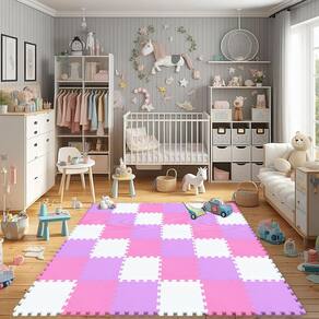 vdf - Tamanho do tapete de espuma – 18 tapetes quadrados interligados de 30 cm x 30 cm, a espessura é de 1 cm, cobrindo uma área de 16 pés quadrados após a montagem. - COR DO PISO PROTETORA - Branco, Rosa, Roxo. O tapete de EVA qqpp é feito de matérias-primas de alta qualidade para garantir a cor e o brilho do produto. - Tapete de segurança – Feito de espuma segura, macia e durável. Livre de BPA, ftalatos, , ecológico e não tóxico. - TAPETE DE INTERLOQUEIO MULTIFUNCIONAL - utilizado para proteger o chão, construir uma área de brincadeiras confortável e segura para bebês, como um tapete de proteção para ioga, exercícios, etc. Adequado para salas de estar, quartos infantis, berçários, ginásios, garagens, porões, etc. - Fácil de limpar e montar – pode ser facilmente limpo com um pano úmido e sabão neutro, a função de intertravamento e portabilidade tornam muito fácil de montar.
