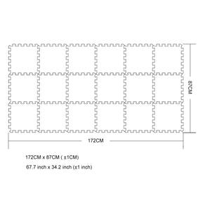 Tamanho de uma peça: 30 x 30 x 1,0 cm (considere uma diferença de 0,1 a 1 cm). 18 peças por conjunto. Material: Feito de EVA ecológico não tóxico e sem odor. Estação adequada: primavera, verão, outono, inverno - ?Área da capa do tapete de jogo--172 cm x 87 cm (± 1 cm) / (68 pol.* 34 pol. (± 1 polegadas)) - ? Tapete de espuma seguro -- livre de BPA, livre de ftalatos, sem grafite. Os tapetes YIMINYUER são feitos de espuma durável e macia e segura. Não é tóxico e atende às normas de segurança regulamentadas dos EUA e Europa. - ? Tapete macio grosso - A espessura é de 1 cm (0,4 polegadas), forte flexibilidade e durabilidade. Perfeito para proteção de piso, exercícios, ioga, sala de jogos. - ? Pode quebra-cabeça com os tapetes de padrão com tamanho 30 cm*30 cm*1 cm em nossa loja. - ? Observação: nossos produtos não podem se enrolar com tapetes de outras lojas.