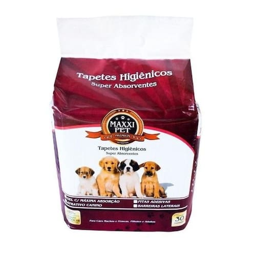 Tapetes Higiênicos Maxxi Pet 60x60cm - 30 unidadesDescriçãoOs tapetes higiênicos Maxxi Pet são super absorventes e contém gel para a máxima absorção, com barreiras laterais para evitar possíveis vazamentos. Possui também fitas adesivas para ser preso ao local desejado.Com atrativo canino que facilita no adestramento.Modo de UsoDelimite a área de circulação de seu cão durante os primeiros dias de uso, para que ele reconheça o atrativo e aprenda a utilizar o tapete MAXXI PET corretamente. É importante que o tapete esteja longe do comedouro e bebedouro. Leve seu cão várias vezes ao dia para perto do tapete MAXXI PET e caso ele urine em outro local, leve-o imediamente para que ele sinta o cheiro do atrativo canino e reconheça o tapete como local apropriado para suas necessidades. Para cães fêmeas e filhotes, retire as fitas protetoras do adesivo, fixando o tapete diretamente ao chão.Para cães machos adultos, retire as fitas protetoras do adesivo e dobre o tapete ao meio, fixando metade no chão e metade na parede.Tamanho: 60cm x 60cm.
