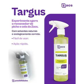 Targus é um removedor de cola de adesivos, piche, tintas spray, graxa, óleo, marcas de tintas de diferentes tipos de canetas e de contaminações derivadas de petróleo. O produto foi desenvolvido com solventes naturais e é ecologicamente correto.
