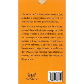 Com este tarô, o leitor saberá que ações, atitudes e comportamentos deverá ter em relação às suas questões diárias. Esta caixa é composta de 38 cartas, sendo 20 com ilustrações dos principais Deuses Hindus e seus atributos; 17 com as mensagens das ações que deverá tomar; e 1 carta branca, relacionada ao livre-arbítrio. Contém, ainda, um livreto com o significado de cada um dos Deuses, sua história, seus atributos e como cada deus poderá lhe ajudar ou lhe orientar.