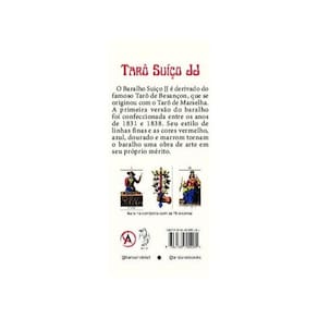 O Baralho Suiço JJ é derivado do famoso Tarô de Besançon, que se originou com o Tarô de Marselha. A primeira versão do baralho foi confeccionada entre os anos de 1831 e 1838. Seu estilo de linhas finas e as cores vermelho, azul, dourado e marrom tornam o baralho uma obra de arte em seu próprio mérito. Marca: Não Informado