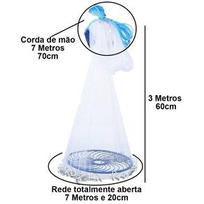 1x Rede Tarrafa Chinesa 7 Metros e 20cm