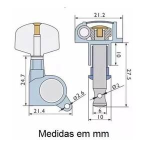 Tarraxa blindada para violao aço guitarra 3+3 custom sound Todos produtos são com e do fabricante Prazos de troca e devolução: - o consumidor tem direto a troca ou devolução do produto com defeito dentro de 7 dias corridos, apos esse prazo é acionada a do fabricante - devoluções por arrependimento deve serm feitas com embalagem, todos itens que acompanham produto, e não deve haver havarias no produto, marcas de uso etc. Por isso tenha certeza do produto que está comprando o prazo para devoluçoes é de 7 dias Somos autorizada das marcas anunciadas - todos produtos são testados antes do envio - regulagem em instrumentos de corda são cortesia, não se aplicam bem como encordoamentos arrebentados não são cobertos na - cores dos produtos podem ter variação da foto para o produto real, principalmente violões em que as madeira tem variaçoes de cor e veios da madeira. Descrição do produto: Jogo 6 peças tarraxa ''tarracha'' blindada para violões tagima, strinberg, giannini etc.. Também é compatível com alguns modelos de guitarras. - para peças unitárias / fracionadas solicite-nos o link para a compra. Especificações: Instrumento: guitarra e violão Trava: não. Disposição das tarraxas 3+3 As tarraxas são fabricadas com os melhores materiais e precisão total para que seu instrumento esteja sempre afinado. Itens inclusos: 01 - jogo de tarraxa blindada violão ou guitarra com parafusos. Ean: 7898672371329