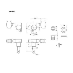 Tarraxa para Guitarra Blindada (R6) Canhoto em acabamento cromado, 6 unidades, acompanha parafusos, Gotoh SG360-07R C/WS02.