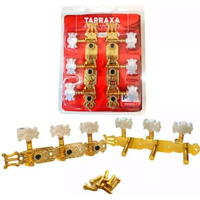 Tarraxa para Violão - Pino Pino Marca: MXTModelo 54.5.00199 Cordas: Aço / Nylon Cor: Dourado Material: Ferro, ABS Disposição:: 3+3 Orientação: Direita/Esquerda Distancia entre os furos: aprox. 3,5 cmDistancia entre os pinos : aprox. 3,0 cm Peso: 150 g