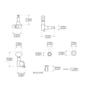 Tarraxas para Guitarra blindada com acabamento cromado, 6 tarraxas em linha com botão em formato oval, Spirit Guitar Parts J05-CR-R6. - Engrenagens com precisão de 15:1