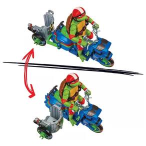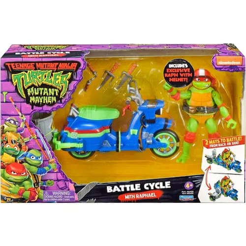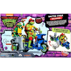 Quando uma Tartaruga não é suficiente para lidar com Super Fly e seu grupo, as Tartarugas chamam Raph e um de seus irmãos para entrar em ação e cuidar do problema! Eles pegaram a scooter de sua amiga April e a modificaram em um Battle Cycle com um carro lateral que se transforma, para que qualquer um dos quatro irmãos possa ir junto e lutar! O Battle Cycle de Raphael é autêntico e decorado exatamente como aparece no filme As Tartarugas Ninja: O Caos Mutante e vem com um boneco do Raphael exclusivo, com 12 pontos de articulação para movimentos de ação de batalha!