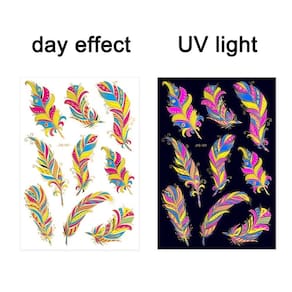 Tatuagem de Pele Temporária Adesivo Fluorescente Balada 1. Descartável: Estas etiquetas impermeáveis de tatuagem são descartáveis, permitindo que os usuários usem padrões diferentes a qualquer hora conforme suas necessidades. 2. Projeto impermeável: As etiquetas de tatuagem são impermeáveis e podem permanecer bonitas ao nadar, banhar-se ou suar durante o exercício. Não se preocupe com seus desenhos de tatuagem borrando ou saindo devido à exposição à umidade. 3. Seguro e não tóxico: Estas tatuagens temporárias são não tóxicas, seguras e inócuas para o corpo. 4. Diversos padrões: O produto contém inúmeros padrões de tatuagem, cobrindo diferentes estilos e temas para atender às necessidades personalizadas de diferentes consumidores. 5. Fácil de usar: Sem ferramentas profissionais, os consumidores podem facilmente aplicar os adesivos de tatuagem à prova d'água em seus corpos para mostrar sua personalidade e estilo a qualquer hora e em qualquer lugar. 6. Brilho: sob luz UV – Fluorescência - ideal para show, bar de boate, festa, balada, etc.