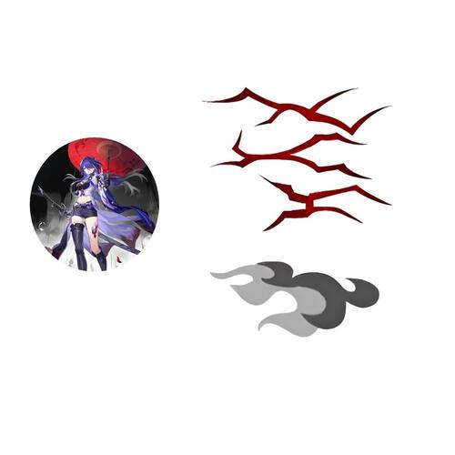 Tatuagem temporária Acheron de Honkai Star Rail cosplay Cor: Preto 1 Tatuagem temporária para cosplay de Acheron, uma personagem jogável de Honkai: Star Rail. Uma andarilha que afirma ser uma Vigia da Galáxia e anda sozinha pelo cosmos..