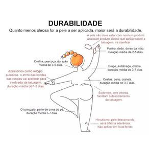 O anúncio possui 2 folhas opcionais que retratam tatuagens da personagem..