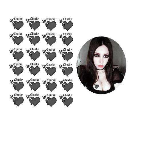 Adicione um toque de rebeldia e diversão ao seu look com nossas tatuagens temporárias Cada folha A4 contém 20 designs exclusivos inspirados na icônica personagem Noiva Chucky.