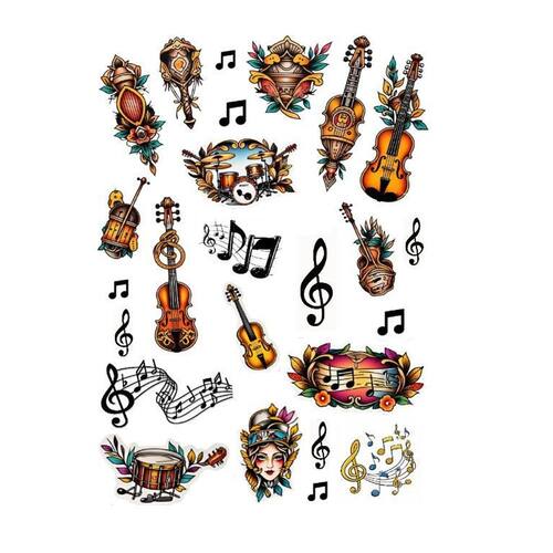 Tatuagem temporária simbolos musicais diversos Folha A4 Cor: Colorido 2