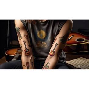 Adicione um toque de música à sua pele com nossas tatuagens temporárias de símbolos musicais Esta folha A4 contém uma variedade de designs incríveis para você expressar sua paixão pela música.