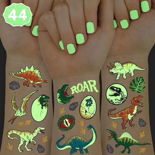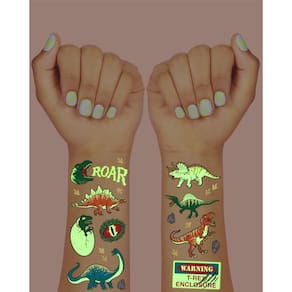 Olá, amante de dinossauros, aqui está Petit Fetti com as tatuagens mais legais prontas para animar a festa! Sabemos que você é apaixonado por dinossauros e o que é mais legal do que organizar uma antiga festa de T-rex? Nós pegamos você! Fizemos essas tatuagens super legais de dinossauro que brilham no escuro especificamente para você e todas as suas amigas, com 44 designs incluídos, há uma para todos! A diversão nunca acaba com eles: testados em festas e garantidos para durar do dia até a noite. Além disso, nossas tatuagens são à prova d'água, duráveis e feitas para serem atóxicas e seguras para a pele. Então, amante de dinossauros, você está pronto para dar uma festa que deixe todo mundo louco? Com certeza estamos! Na verdade, estamos tão prontos que temos muito mais decorações de festa para você comprar diretamente na nossa loja! - MAIS CRU! Nossas tatuagens de dinossauros que brilham no escuro são a bolsa de presentes perfeita, decoração de festa, surpresa de aniversário e atividades para ficar em casa:) - Tatuagens de dinossauro para toda a festa: dois lençóis com um total de 44 tatuagens que brilham no escuro com desenhos desenhados à mão de T-rex, estegossauro, pterossauro, tricerátopo, brontossauro e muito mais que os convidados vão adorar! - Cheio de cores! Nossas divertidas tatuagens temporárias foram submetidas a rigorosos testes em festas e têm 100% de garantia de durar do dia até a noite - as decorações perfeitas para festas de dinossauros! - O acessório de festa perfeito: uma adição divertida a qualquer festa de aniversário infantil, chá de bebê ou decoração divertida de festa infantil! Cada folha mede 8,25 “x 6", criando tatuagens do tamanho perfeito! - Fácil de aplicar: coloque a tatuagem na pele limpa e seca > Passe levemente a tatuagem com uma toalha de papel úmida > Remova o papel, deixe a tatuagem secar e divirta-se! Instruções incluídas no verso de cada folha:)