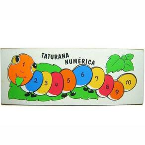 Taturana Numérica Educativa Em Madeira - Dicá Lindo quebra-cabeça de números, com cores fortes e vivas. Peças em madeira, estimulam a criança a relacionar, encaixando o número correto com o fundo da placa. Excelente acabamento. Desenvolve a coordenação viso-motora, criatividade, e noção de espaço. Medidas: 42x16x0.5 cm. Idade: a partir de 3 anos. Certificação Inmetro: CE-BRI/ICEPEX-N 00174-82 NM300/2002.