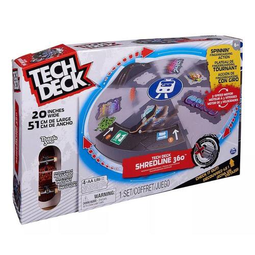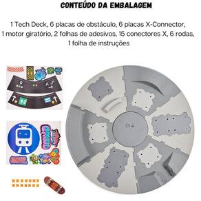 DESCRIÇÃO DO PRODUTOTech Deck Shredline 360 Playset Pista Giratória Skate De Dedo"Park 360° personalizável: prepare-se para uma destruição ininterrupta com o Tech Deck Shredline 360°, a única rampa de Tech Deck motorizada!Use as placas de obstáculos e os conectores X para configurar diferentes combinações e atingir obstáculos em um loop infinito! 3 velocidades diferentes: alterne velocidades e direções nesta pista de obstáculos de 51cm de largura. É o campo de treinamento definitivo!Desacelere para aprimorar suas habilidades ou pegar a ação de girar enquanto desafia seus amigos!Cóntem: 1 plataforma Técnica, 6 placas de obstáculo, 6 placas de conector X, 1 motor giratório, 2 folhas de adesivos, 14 conectores X, 6 rodas, 1 folha de instruções- Requer 4 Pilhas AA (LR6) De 1,5 V (Não Inclusas).CARACTERÍSTICAS TÉCNICASConteúdo da Embalagem: Tech Deck - Playset Giratório Motorizado Shredline 360Dimensões Aproximadas do Produto: 51 cm (Largura)Dimensões Aproximadas da Embalagem: 11 cm x 29 cm x 45 cm (Altura x Largura x Comprimento/Profundidade)Material/Composição: Plástico e MetalIdade Mínima Recomendada: A partir de 6 aos Participantes: A partir de 1 pessoaAlimentação: Requer 4 Pilhas AA (LR6) De 1,5 V (Não Inclusas).Marca: SunnyReferência: 2899Outras informações: As cores podem variar entre as imagens mostradas acima e o produto. Imagens meramente ilustrativas.Aviso: As informações e imagens divulgadas são de total responsabilidade do fabricante/fornecedor.APROVADO PELO INMETRO