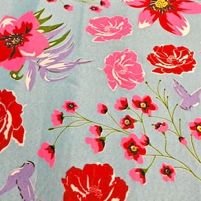O tecido chita "estampas florais pequenas" e o tecido chitão "estampas florais grandes" são bem conhecido por suas cores vibrantes, são muito usadas para decoração de ambientes, em festas juninas, artesanato, colagem em MDF, confecção de roupas.