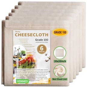 Tecido de queijo de grau 100 com bainha (ESTE NÃO É UM SACO) /Colador de tela — A gaze Olicity de grau 100 é feita de algodão puro l e 100% cru. As bordas com bainha e o tamanho perfeito a tornam mais durável e conveniente do que a gaze tradicional.