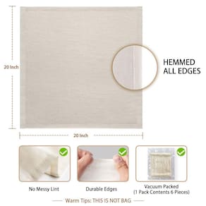 Vem 1 pacote que contém 6 peças de panos de queijo (20 polegadas x 20 polegadas) - De acordo com o resumo dos hábitos de cozimento repetidos, 20 x 20 polegadas é o tamanho mais adequado para atender às suas necessidades diárias de cozimento, muito conveniente de usar e sem necessidade de cortar. Também pode ser para cobrir brotos, embrulhar tortilhas quentes, etc.
