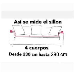 Practicas Covers Capa de tecido elástico em tecido LISA, para uma poltrona de 4 corpos que não é tão larga a ponto de medir entre 230 cm e 280 cm, com uma altura de 90 cm. Você deve medir o Sillon de acordo com a imagem publicada para que não caiba no menino. Esta capa é de excelente qualidade e fácil de lavar. Ideal para proteger seu sofá e renovar sua aparência, sem a necessidade de estofar... Uma variedade de cores e desenhos Vem com 2 capas de almofada