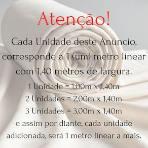Variação de cor: A tonalidade do tecido pode variar até 10% conforme o dispositivo utilizado para visualização, garantindo que você esteja sempre ciente da aparência real do produto.