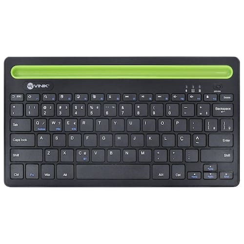 Feito em plástico resistente, o teclado Bluetooth 3.0 2.4 Ghz Dynamic Smart Abnt é durável e resistente ao uso diário. Sua cor preta com faixa verde dá um toque moderno e elegante ao acessório.