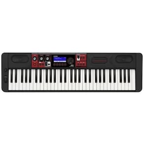 Especificações Técnicas- Referência: CT-S1000V- Linha: Casiotone- Teclado: 61 teclas de tamanho padrão- Polifonia máxima: 64- Metrônomo: Sim- MIDI: Recepção multi-timbre de 16 canais- Tomada de força: 9,5 V CC- Falantes: 13 cm x 6 cm oval x 2 saída: 2,5 W + 2,5 W - Consumo de energia: 7,5 W- Dimensões: 93 L x 25,8 P x 9,1 A cm- Peso: Aproximadamente 4,7 kg excluindo baterias - Acessórios incluídos: Adaptador de áudio e MIDI Bluetooth WU-BT10 - Tons: 800- Letra: 100- 150 tons de usuário- Efeitos digitais: Reverberação: 24 Coro: 12- Banco de músicas: Músicas do usuário: 10 Música de demonstração: 1- Acompanhamento automático- Ritmos: 243- Predefinição de um toque: 243- Harmonização automática: 12- Ritmos do usuário: 50Outras funções:Resposta ao toque: 3 tipos, DesligadoTransposição: -12 0 +12 semitonsAfinação: A4 = 415,5 a 465,9 Hz padrão inicial: 440,0 Hz , variável em passos de 0,1 HzAjuste de Escala Temperamento : Igual + 16 outros tiposFunção APPToque de acordesCriador de LetrasTerminais de entrada/saída:Tomada PHONES/OUTPUT: Mini jack estéreo 3,5 mm Voltagem de saída: 1,2 V RMS MAXTomada AUDIO IN: Minitomada estéreo 3,5 mm Impedância de entrada: 10kOTensão de entrada: 200mVPorta USB: Conector micro BPEDAL: Conector padrão 6,3 mm Sustentação do pedal, sostenuto, suave, metrônomo Fonte de energia:Alimentação de 2 vias6 pilhas alcalinas de tamanho AA ou pilhas recarregáveis de níquel-hidreto metálico de tamanho AAOperação contínua: aproximadamente 16 horas pilhas alcalinas , aproximadamente 13 horas pilhas recarregáveis de níquel-hidreto metálico Adaptador CA padrão JEITA, com plugue de polaridade unificada , desligamento automático de 30 minutos pode ser desativado. Homologação Anatel: 087441811958
