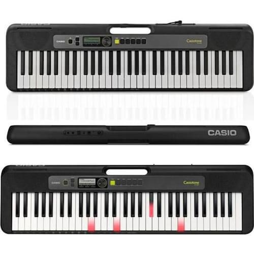 Lk-s250 teclados casiotone divirta-se aprendendo com o sistema de teclas iluminadas. 61 teclas resposta ao toque: 2 níveis de sensibilidade polifonia máxima 48 400 tons integrados 77 ritmos integrados timbres 60 60 timbres sistema de teclas iluminadas modo dance music com voz amperagem de saída: 2,5 w 2,5 w usb para host conexão com o aplicativo recursos design portátil, fino e elegante com o lk-s250, você curte sua música quando e onde quiser. Com tamanho compacto de 930 mm x 256 mm x 73 mm, ele apresenta um volume 30% menor do que os modelos lk-265 e o lk-266 e oferece aproximadamente 16 horas de autonomia com pilhas alcalinas. A alça na parte superior do teclado oferece maior praticidade para transporte do instrumento, que pesa somente 3,3 kg. Graças ao design arredondado das suas bordas e arestas, carregá-lo também é muito seguro. O período de operação contínua pode ser menor dependendo do tipo de bateria e da forma como você toca. Design portátil, fino e elegante interface fácil de usar para todos o lk-s250 conta com uma interface simples e intuitiva, oferecendo um layout organizado com menos botões graças à tela lcd e o mostrador de pontos. Ele também é equipado com um botão de início, que permite que os usuários retornem à tela a qualquer momento, oferecendo um teclado multifunções superior com usabilidade avançada. Interface fácil de usar para todos som surpreendente em um teclado supercompacto os alto-falantes ovais de 13 cm x 6 cm com ímãs reforçados proporcionam qualidade de som acima das expectativas para um instrumento tão compacto. Uma função adicional que otimiza o equalizador em conjunto com o volume fornece equilíbrio de som do baixo aos agudos, mesmo em volumes baixos. As vozes e o modo dance music ampliam as possibilidades da sua música o lk-s250 inclui um modo que permite que os usuários combinem graves, baixo e frases de sintetizador para curtir a dance music, bem como 12 tipos de vozes de dance music ideais para músicas animadas. Basta pressionar com o ritmo para adicionar tons à reprodução. Sistema de teclas iluminadas e lição de desenvolvimento melhore sua execução com o sistema de teclas iluminadas, que orientará você iluminando a próxima tecla a ser tocada, e a lição de desenvolvimento, que ajuda você a praticar em um formato de quatro etapas. Sistema de teclas iluminadas e lição de desenvolvimento teclas no estilo piano com resposta ao toque as teclas apresentam o mesmo formato das do piano. A resposta ao toque oferece variações de volume e tom similares às do piano de acordo com a força utilizado ao tocar nas teclas.