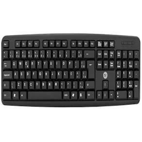 Possui 107 teclas alfanuméricas e de funções, incluíndo "Ç" e "Alt Gr"