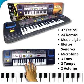 Teclado de brinquedo infantil educativo presente dia das crianças pronto Teclado infantil O teclado infantil piano teclas com microfone é o brinquedo ideal para despertar a criatividade musical das crianças. Com design divertido e fácil de usar, ele estimula a coordenação motora, a imaginação e o interesse pela música desde cedo. Um brinquedo educativo, seguro e cheio de diversão para os pequenos artistas Conteúdo da embalagem 1 teclado infantil piano com teclas Características Teclado musical infantil com teclas funcionais Estimula a imaginação, criatividade e habilidades musicais Material resistente e de alta qualidade Especificações Comprimento: 44 cm Altura: 5 cm Largura: 14 cm Idade recomendada: a partir de 3 anos Alimentação: pilhas não inclusas Garanta já o teclado infantil e incentive o talento musical do seu pequeno de forma divertida e educativa Homologação Inmetro: CE-BRI/IQB 006429 54879/21-017 Marca: Não Informado