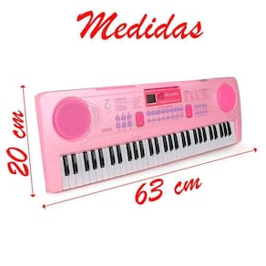 Especificações: - 6 Músicas de demonstração - 10 Ritmos - 16 Tons - 8 Tipos de som de bateria - Botões de controle de semi-tons - Botões de controle de tempo - Botões de controle de volume - Funções de gravação e reprodução - Funções de acrescentar acordes nos ritmos - Modo de aprendizado - Microfone - Entrada de áudio auxiliar para reprodução de músicas - Entrada para fonte de alimentação (plug de tomada não incluso) - Alimentação: Carregador DC5V