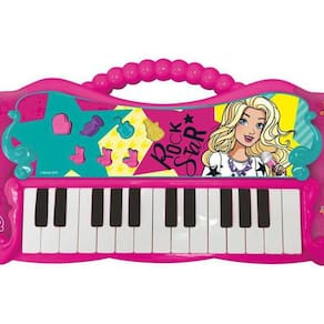 O contato com música na infância traz benefícios para o desenvolvimento e aprendizagem dos pequenos. Cada vez mais estudos comprovam que crianças que aprendem música são mais inteligentes, tem melhor vocabulário e capacidade de entender e responder perguntas. Por isso mesmo, não precisa esperar seu filho ter idade para segurar um instrumento específico para começar sua educação musical. Até os bebês tem vez na hora de começar a fazer barulho, basta escolher o brinquedo ideal para ele se divertir. O teclado de brinquedo Fabuloso Barbie da Fun é uma ótima opção para a criançada! Na cor rosa, o brinquedo vem com a função caixa de som, basta conectar o celular ou MP3 Player e acompanhar as músicas favoritas. Já vem com cabo para conectar e deixar a brincadeira muito mais divertida e musical.