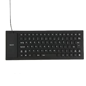 Características É macio e durável; Tem um toque confortável; À prova d'água Ultra slim; Fácil armazenamento; Material de silicone macio permite digitação silenciosa.