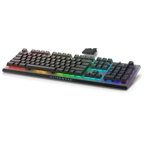 ESPECIFICAÇÕES TECNICAS Peso: 1,06 Kg Dimensões (AxLxP): 5,8 x 45,1 x 14,8 cm Contraluz: AlienFX RGB por tecla / 16,8 milhões de cores Interface: Wireless, Bluetooth e USB Função de teclas de atalho: Programável, comutador basculante e botão rotativo Cabo destacável: Sim Tecnologia do teclado: Mecânico Tipo de interruptor de chave: Vermelho MX Cereja Altura ajustável: Sim Cor: Dark Side of the Moon Comprimento do cabo: 2m Acessórios incluídos: cabo USB-C para USB-A de 2m Software incluído: Alienware Command Center, AlienFX SO necessário: Windows 10 ou posterior Garantia: 2 anos Ean: 5397184790373