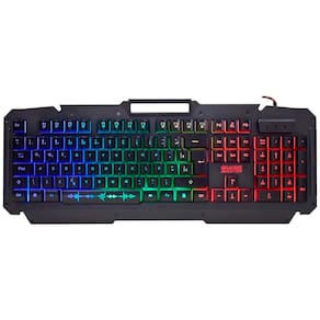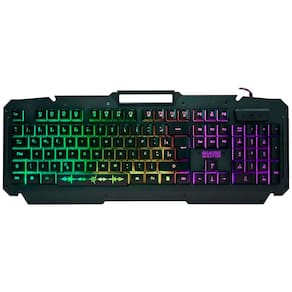 Especificações: - Teclado gamer semi mecânico - Padrão ABNT 2 - Caracteres impressos a laser para maior durabilidade - Base de metal resistente a impactos - Cor: Preto - Efeitos de LED nas teclas - Cores dos LEDs: azul, vermelho, verde, ciano, amarelo e violeta - Suporte de 85x12mm para smartphone - Design moderno - Função anti-ghosting de 19 dígitos (Q+A+Z+W+S+X+E+D+C+B+ESPAÇO+seta direcional para cima+seta direcional para baixo+seta direcional para esquerda + seta direcional para direita + TAB + ALT L + CTRL L + SHIFT L)