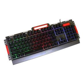 Teclado: Teclas plunger, macias e silenciosas Acabamento em metal Padrão: ABNT Iluminação de LED colorida ajustável Design ergonômico e com pés de apoio Conexão: USB - Compatível com: Windows 2000/ XP / Vista / 7 / 8 e 10 Voltagem: 5V/DC +- 0.5V Corrente: 350 mA Comprimento aproximado do cabo: 150 cm Peso: 870g
