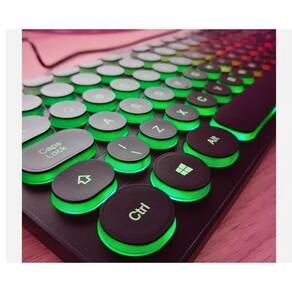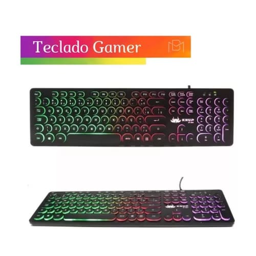 Teclado Gamer Mecânico Led RGB Iluminado - Teclas SilenciosasTeclado todo Iluminado em RGB e foi especialmente desenvolvido para que você possa expressar suas habilidades e seu estilo.Melhore a sua experiência de jogo, seja você só um amador ou todo um especialista, e faça que suas jogadas atinjam outro nível.Você poderá evitar falhas ao tocar várias teclas ao mesmo tempo.Recomendado para jogares que jogam por varias horas durante o dia ou madrugada.Especificações:-Conexão: USB.-Quantidade de teclas: 107.-Alimentação: 5Vdc (via porta USB).-Comprimento do cabo: 1,5m.-Dimensões: Comprimento 44,5 cm X Largura 12,5 cm x Altura 2 cm