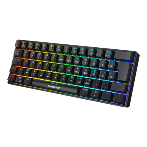 Disponível em 2 cores Disponível em 2 cores A função Hot Swap permite que você troque os switches facilmente, personalizando o teclado ao seu estilo sem complicações. Além disso, o iluminado RGB customizável traz mais imersão ao jogo, criando um visual único e vibrante no setup. Com design elegante em preto e construção robusta, este teclado não apenas otimiza o espaço em sua mesa, mas também garante durabilidade. O cabo adquirido Tipo C oferece praticidade para transporte e conectividade estável. Ideal para jogadores que desejam precisão e estilo, o Neologic Precision Pro vai transformar suas jogadas, tornando cada ação mais fluida e responsiva.