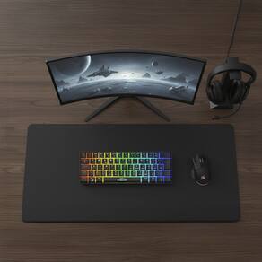 Seja mais Rápido e Preciso Com design minimalista e desempenho avançado, o teclado 60% compacto oferece uma configuração eficiente com 61 teclas mecânicas, ideal para configurações com espaço limitado. Equipado com switches Red ou Blue, conhecido por sua atuação rápida e silenciosa, ele é perfeito para gamers que buscam velocidade e melhorias em cada comando.